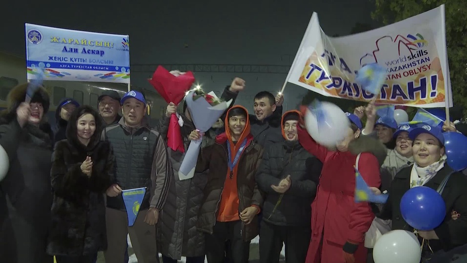 110 студентов стали победителями национального чемпионата «WorldskillsKazakhstan 2022». Они получат приглашения на работу от крупных работодателей страны и возможность войти в национальную сборную для участия в следующем году в чемпионате WorldSkills Europe. С победой вернулся и студент 2 курса Туркестанского индустриально-строительного колледжа АлиаскарАскарулы. Юношу встретили на железнодорожном вокзале его учителя, друзья и родители.