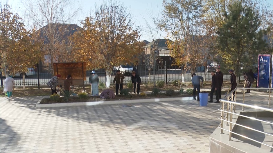 Сегодня белые халаты временно сменили на инвентарь для уборки — медики привели в порядок прилегающую к поликлинике территорию. Собрали мусор, выметали пыль, ухаживали за деревьями и высаженными цветами.
